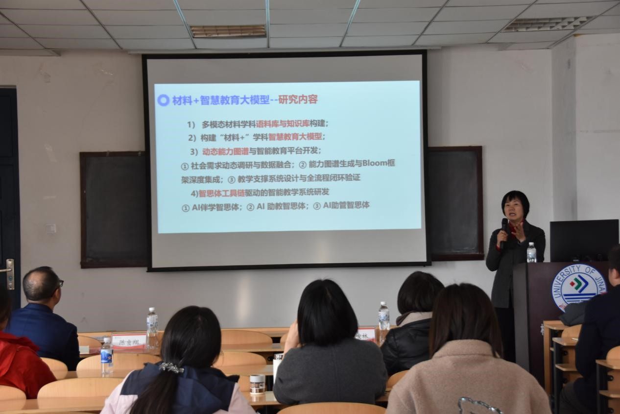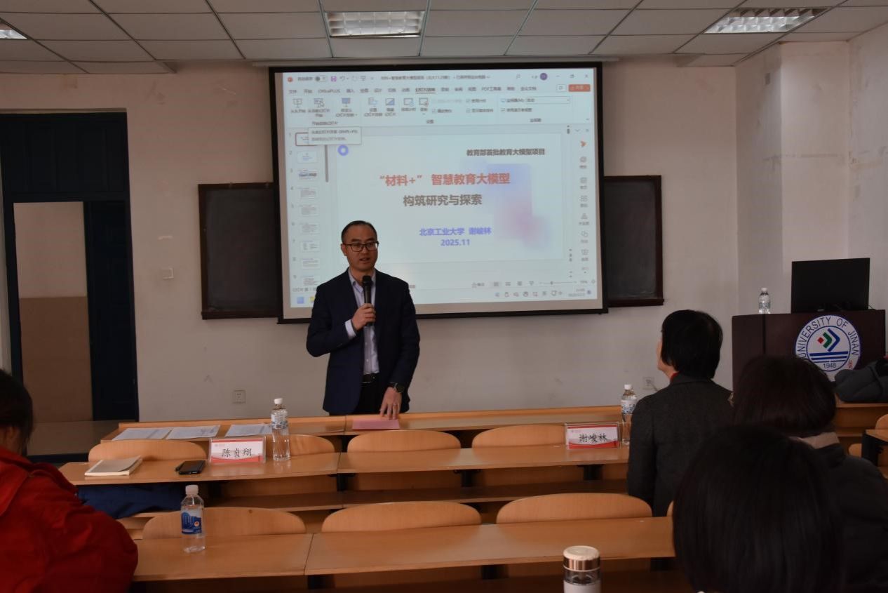 为进一步推动材料学科与人工智能技术的交叉融合,探索智慧教育创新路径,12月3日,材料科学与工程学院特邀全国工程教育专业认证结论审议委员会委员、材料类专业工程认证委员会副主任委员、国家教学名师、全国高校首批黄大年式教师团队负责人、北京工业大学谢峻林教授来校作题为“‘材料+’智慧教育大模型构筑研究与探索”的学术报告。报告会由济南大学教务处处长陈贞翔主持,学院领导班子成员、系主任、专业负责人及骨干教师参会。