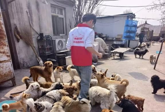 活动伊始,志愿者们身着统一服装在小白楼集结,将前期募集的爱心物资整理打包、有序搬运,随后一同前往济南黄河流浪动物关爱中心。抵达救助基地后,志愿者们迅速投入服务,通过互动与抚摸拉近与小动物的距离。随后,大家为狗狗分发火腿肠、磨牙棒等食物,细心进行投喂,现场氛围温馨融洽。与此同时,部分志愿者手持清洁工具,对基地院落进行全面清扫,着力改善流浪动物的居住环境,其间不少人与温顺的犬只亲密互动,画面暖意融融。活动过程中,志愿者还协助基地工作人员开展狗粮分装、物资调配与搬运等工作,全程分工明确、配合默契。活动尾声,志愿者们与可爱的犬只合影留念,定格温暖瞬间,本次志愿服务活动顺利完成。