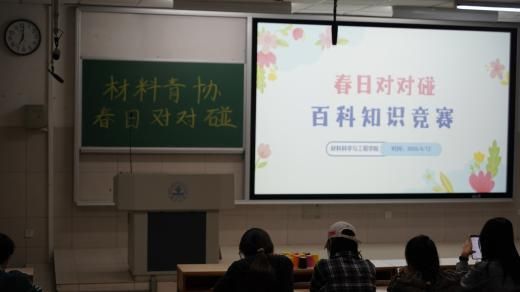 为丰富校园文化生活,营造乐学善思的学习氛围,激发学生的学习兴趣,2026年4月12日晚,济南大学材料科学与工程学院“青春无悔”青年志愿者协会在第二教学楼105教室举办“春日对对碰”百科知识竞答活动。学院本科生以小组形式踊跃参赛,在比拼与协作中展现青年学子良好精神风貌。
